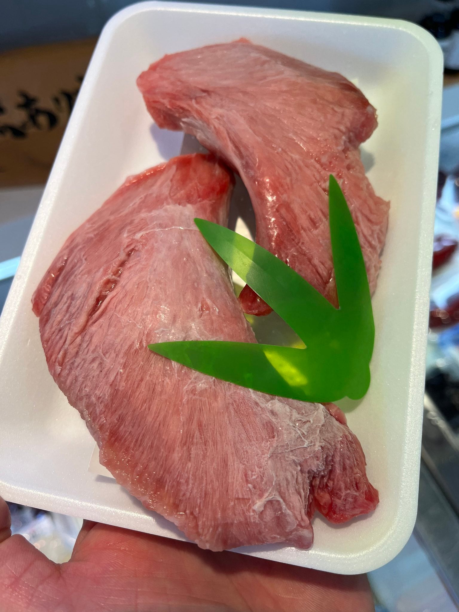 天然マグロホホ肉(刺身用)265gを発送します。写真のホホ肉が3枚入る感じです。筋や打ち身等も綺麗に取り除いてありますので解凍してすぐにお召し上がりいただけます。お刺身、タタキ風、ステーキ、塩焼き、ソテー、フライ等にご活用ください!!!